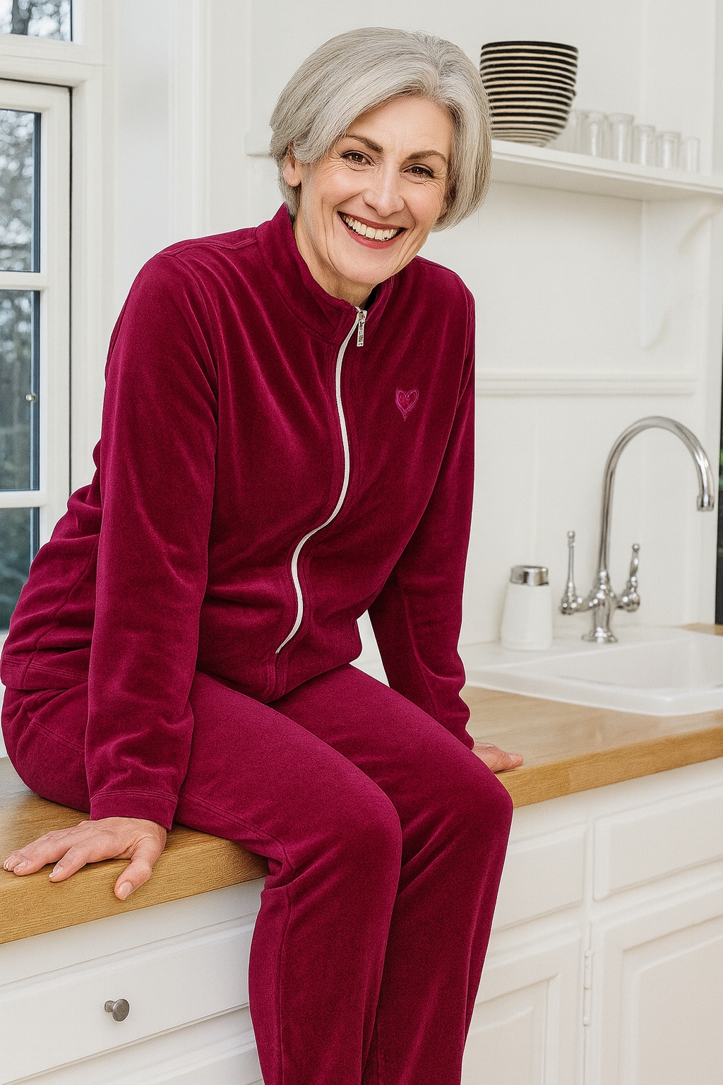 Burgundyrød hjemmedragt / veloursæt fra Brandtex til damer