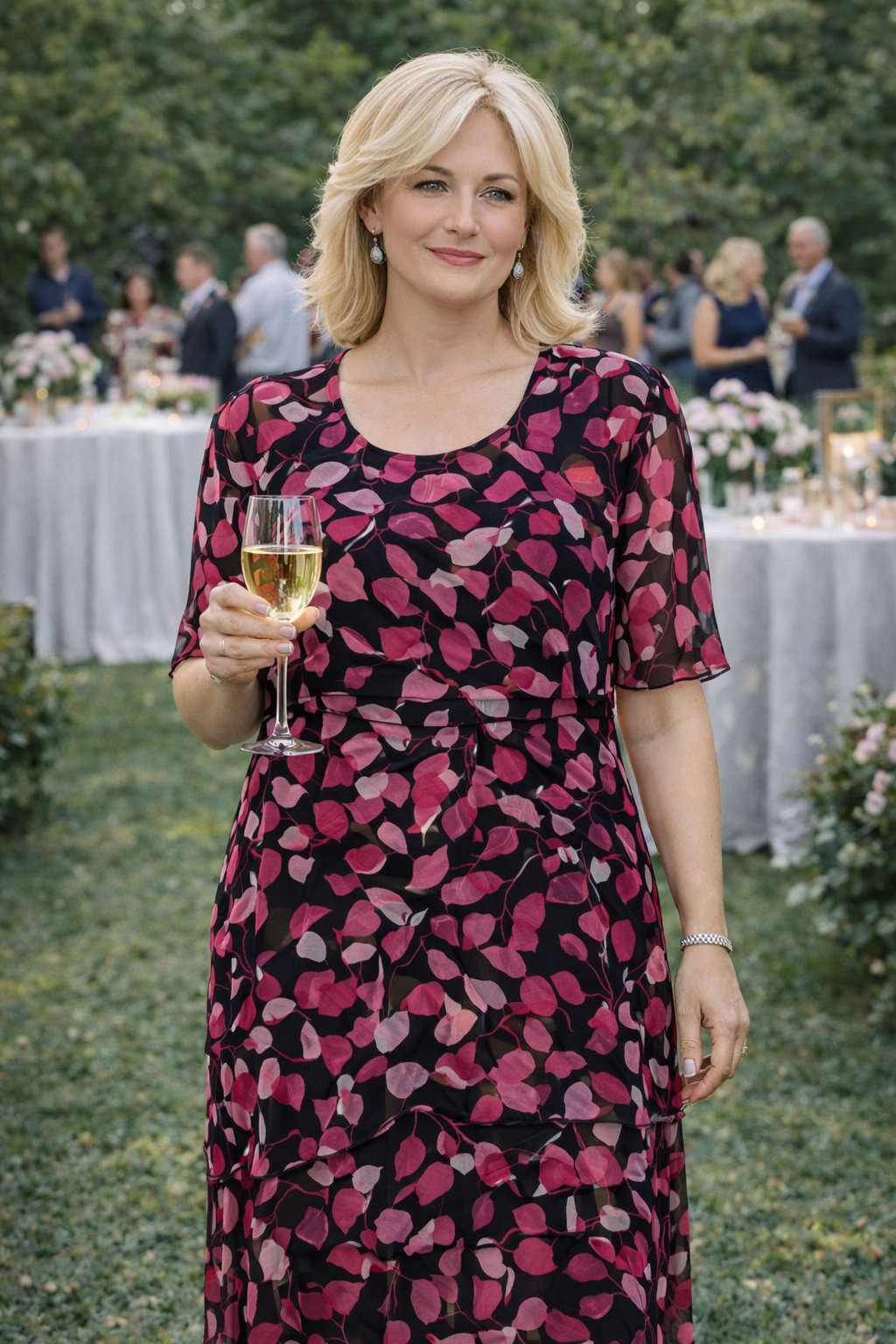 Fin kjole til fest i let legende lag på lag ciffon.