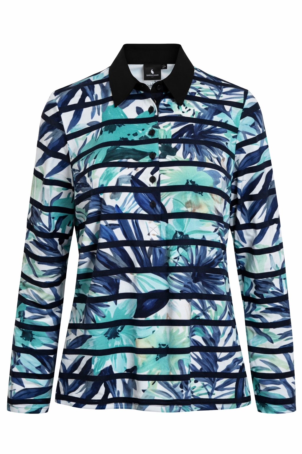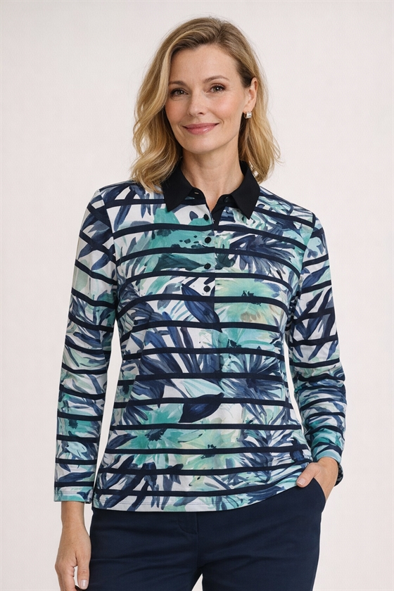 Polo skjorte bluse fra Brandtex i blå og grønt mønster