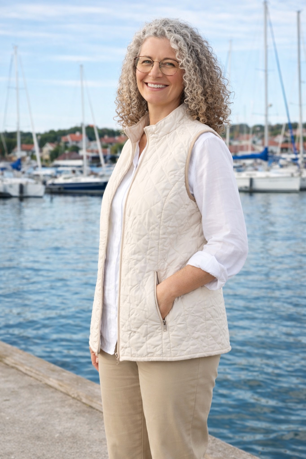 Den er let, lun og virkelig nem at style – og farven går til alt!” Hos os finder du ikke bare denne quiltet vest til kvinder, men også sort vest, hvid vest, blå vest dame og dunvest – alle udvalgt som veste til kvinder 50+ med blik for funktionalitet og pasform. Uanset om du søger strikvest dame, smart vest dame eller veste til modne kvinder, har vi noget, der passer til dig.