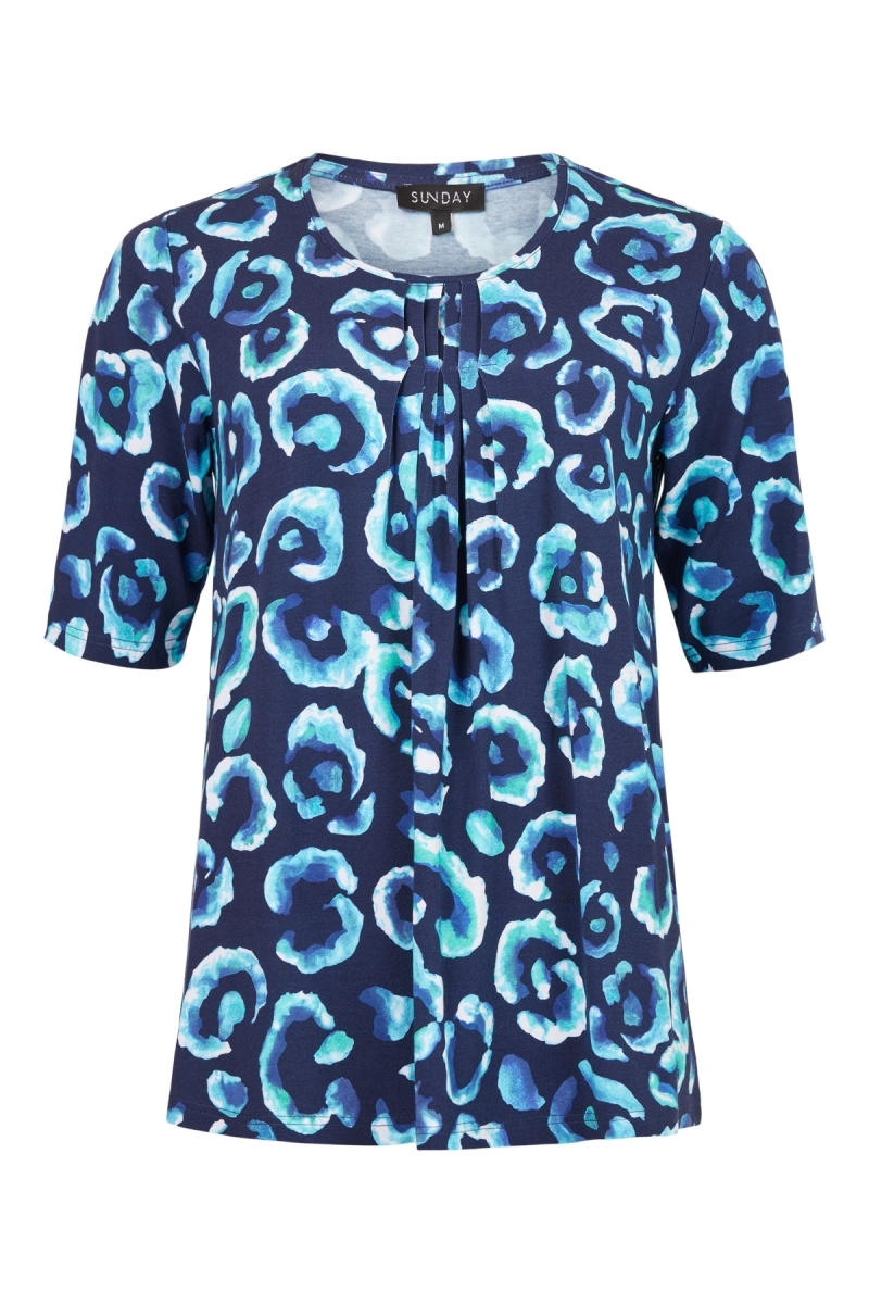 Flot T-shirt fra Sunday med marinefarvet bund og lyseblå blomster