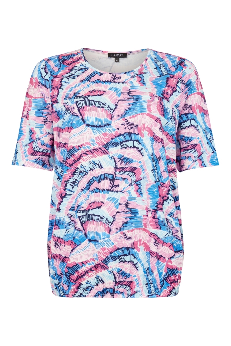 Flot T-shirt fra Sunday med elastik ved hoften i rosa og blå nuancer