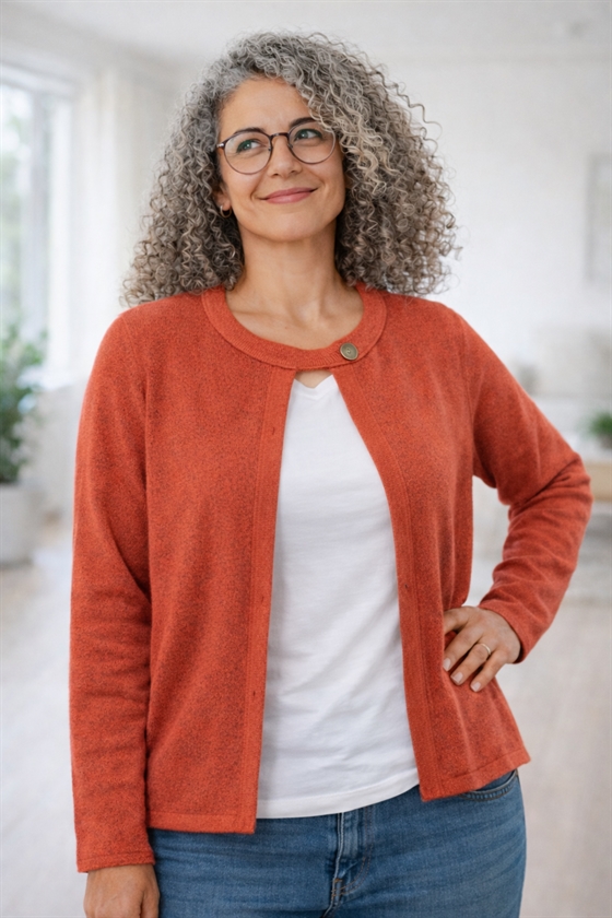 Groft vævet jakke i skøn coral farve med enkelt knap lukning. Samme stofkvalitet, som mærket Masai bruger til deres jakker.