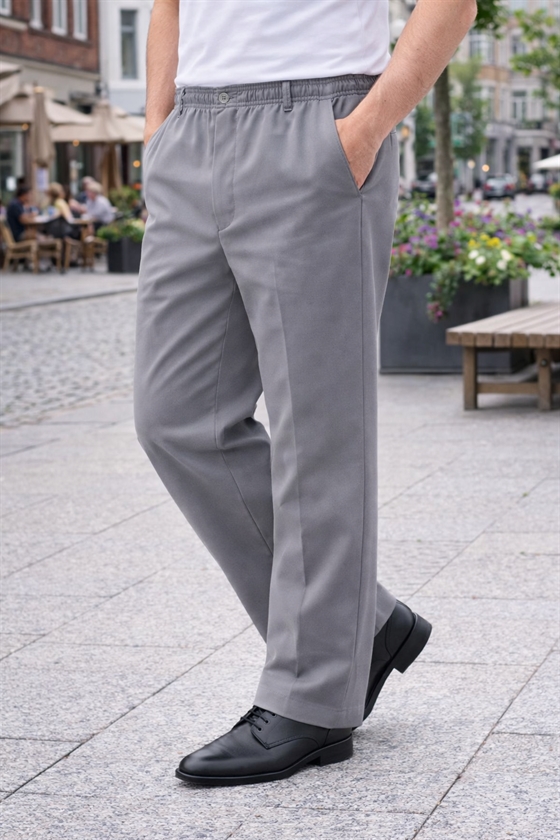 JENS - Helårs grå herrebukser med elastik i taljen og lynlås