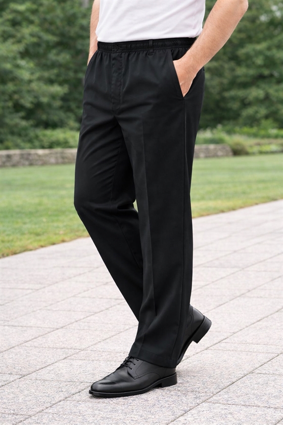 JENS - Helårs sorte herrebukser med elastik i taljen og lynlås