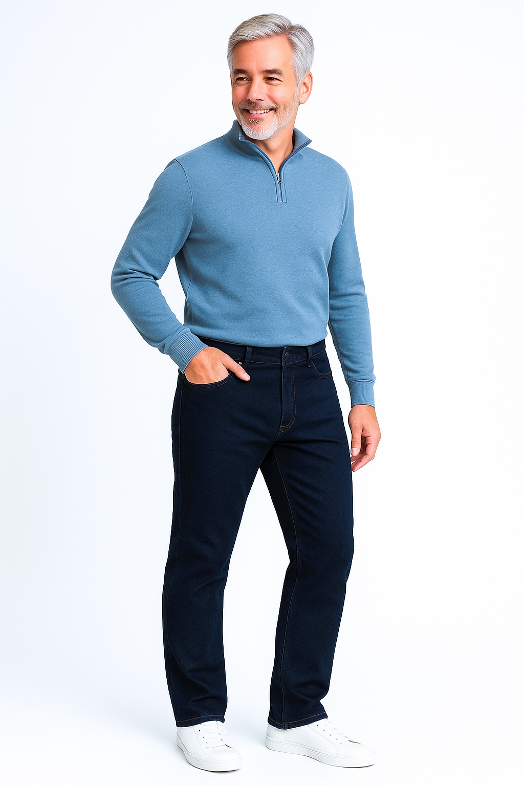 Sunwill bukser med elastik i taljen i en lækker cowboykvalitet, som kan bruges hele året.