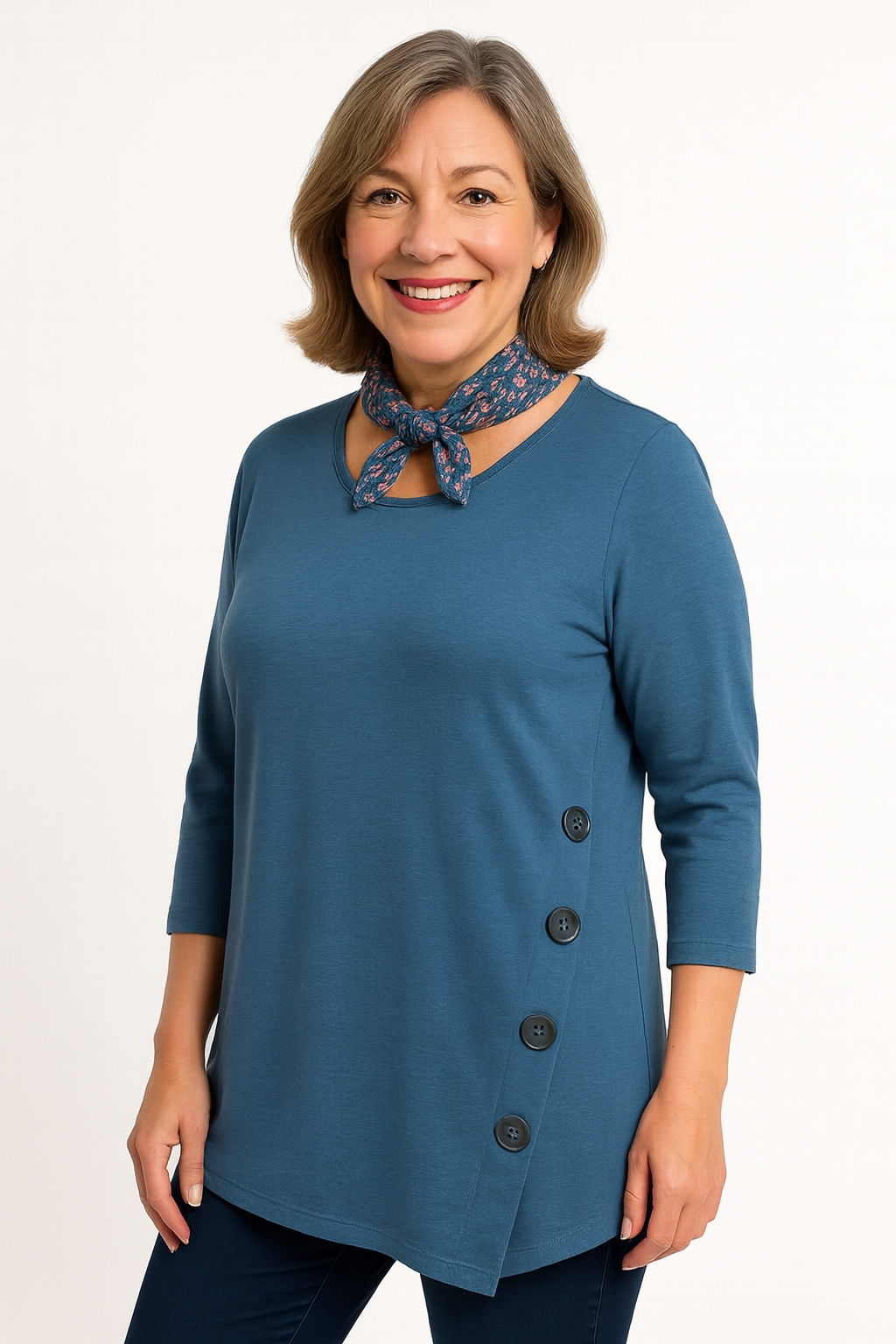 Gabrielle K Let strik med 3/4 ærme og dekorative knapper