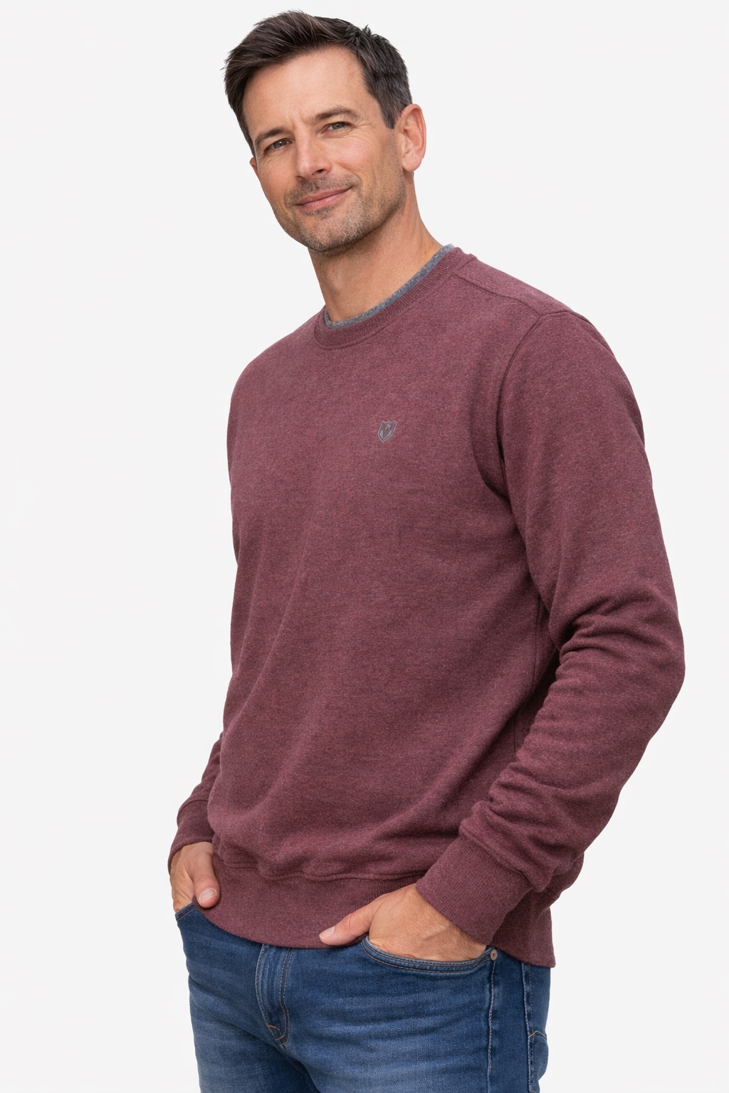Preend sweatshirt i bordeux m lange ærmer og rund hals samt rib ved ærmer og hofte. Den har et lille broderi ved brystet samt en grå kontrastfarve ved halsen.