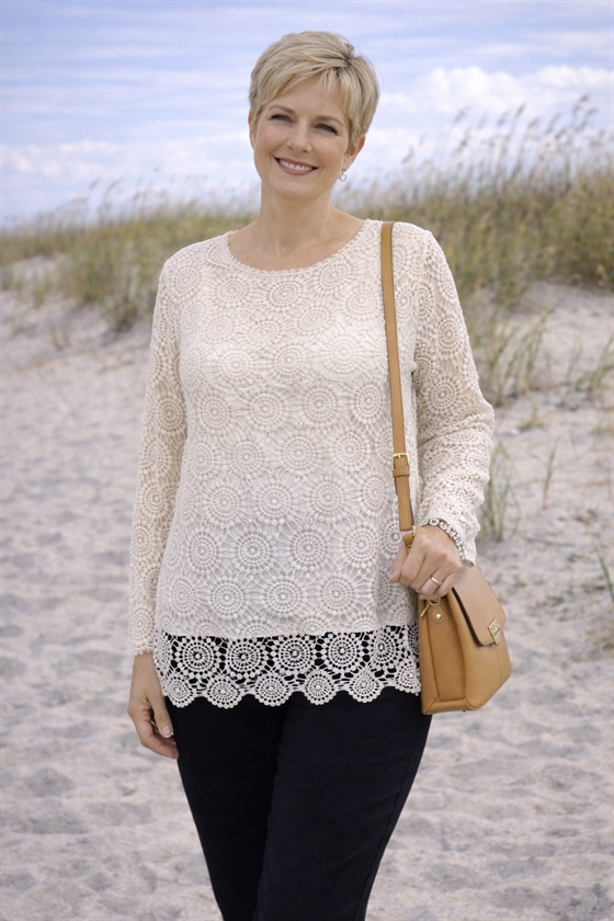 Flot blonde t-shirt med lange ærmer og rund hals.