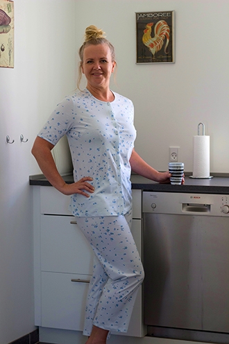Lyseblå pyjamas med blå blomster