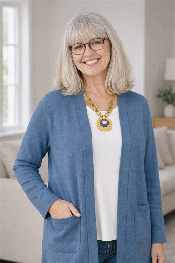 Den Marinello lange striktrøje i meleret jeansblå er et uundværligt stykke tøj til kvinder, der ønsker både komfort og klassisk stil. Denne strik jakke er designet til at give dig varme og en behagelig fornemmelse i hverdagen, mens dens smukke blå farve giver et friskt pust til enhver garderobe. Striktrøjen har praktiske lommer, hvor du nemt kan opbevare småting, og dens afslappede snit gør den perfekt til både afslappede stunder derhjemme og sociale arrangementer. Damestrik som denne er skabt til at blive din nye favorit, og det lette, bløde materiale gør den velegnet til brug hele året rundt.