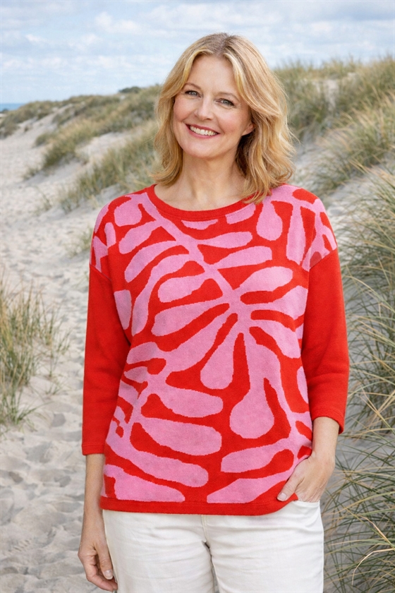 Få et friskt og feminint look med Micha damestrik i et smukt rosa/rødt mønster. Denne Micha bluse er en perfekt kombination af stil og kvalitet med dens nøje udvalgte materialer og iøjnefaldende design.