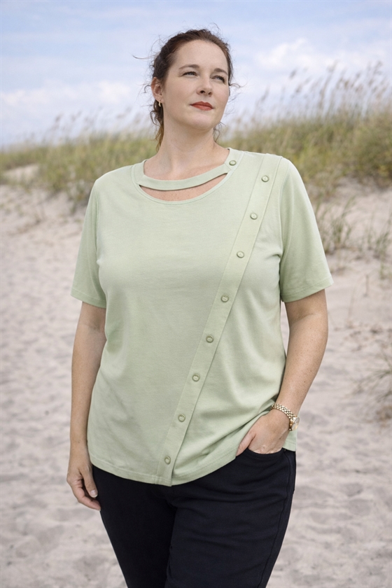 Pæn lysegrøn bluse fra Paramour med flot detalje ved halsen
