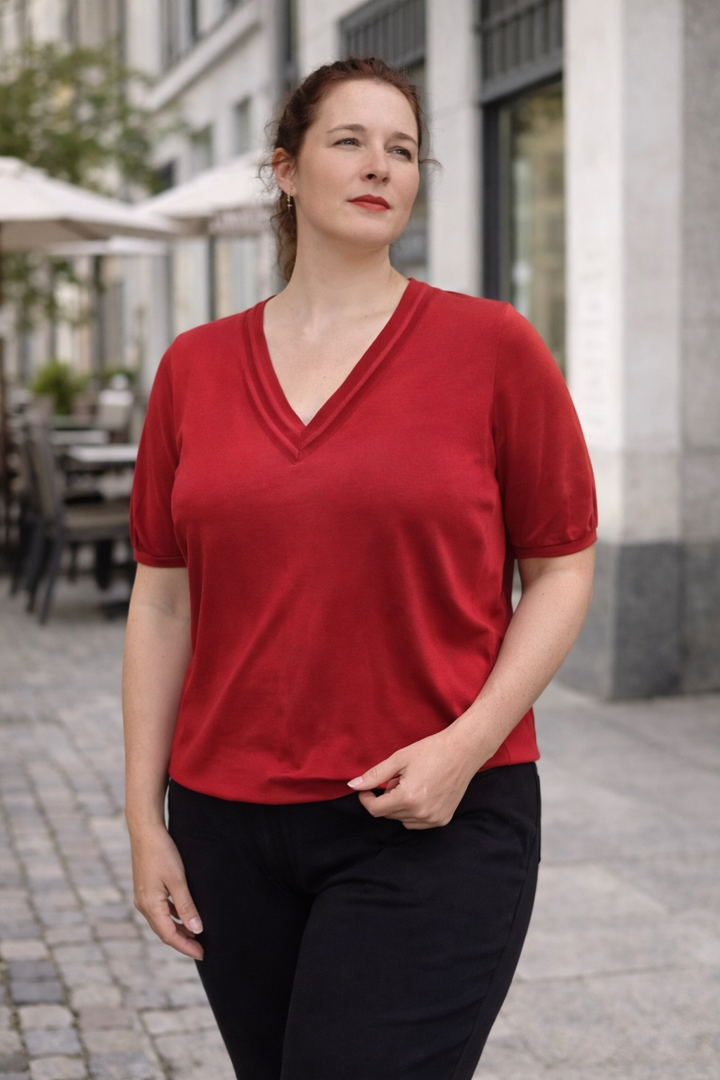 Pæn rød t-shirt fra Signature med v-hals