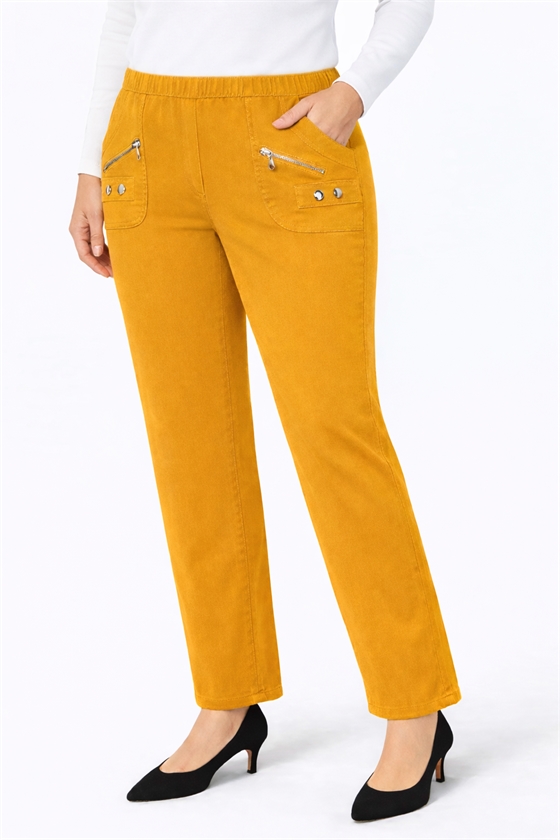 Pasform Pia - Gule bukser med stretch og elastik i livet