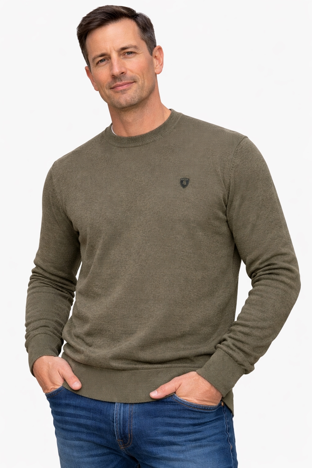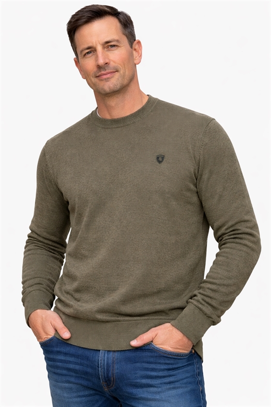 Preend sweatshirt i grøn m lange ærmer og rund hals samt rib ved ærmer og hofte. Den har et lille broderi ved brystet samt en grå kontrastfarve ved halsen.