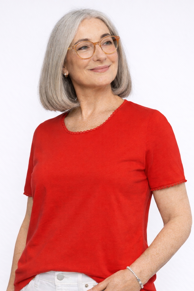 Rød MXO shirt med fin tynd blondesnor rundt i halsen