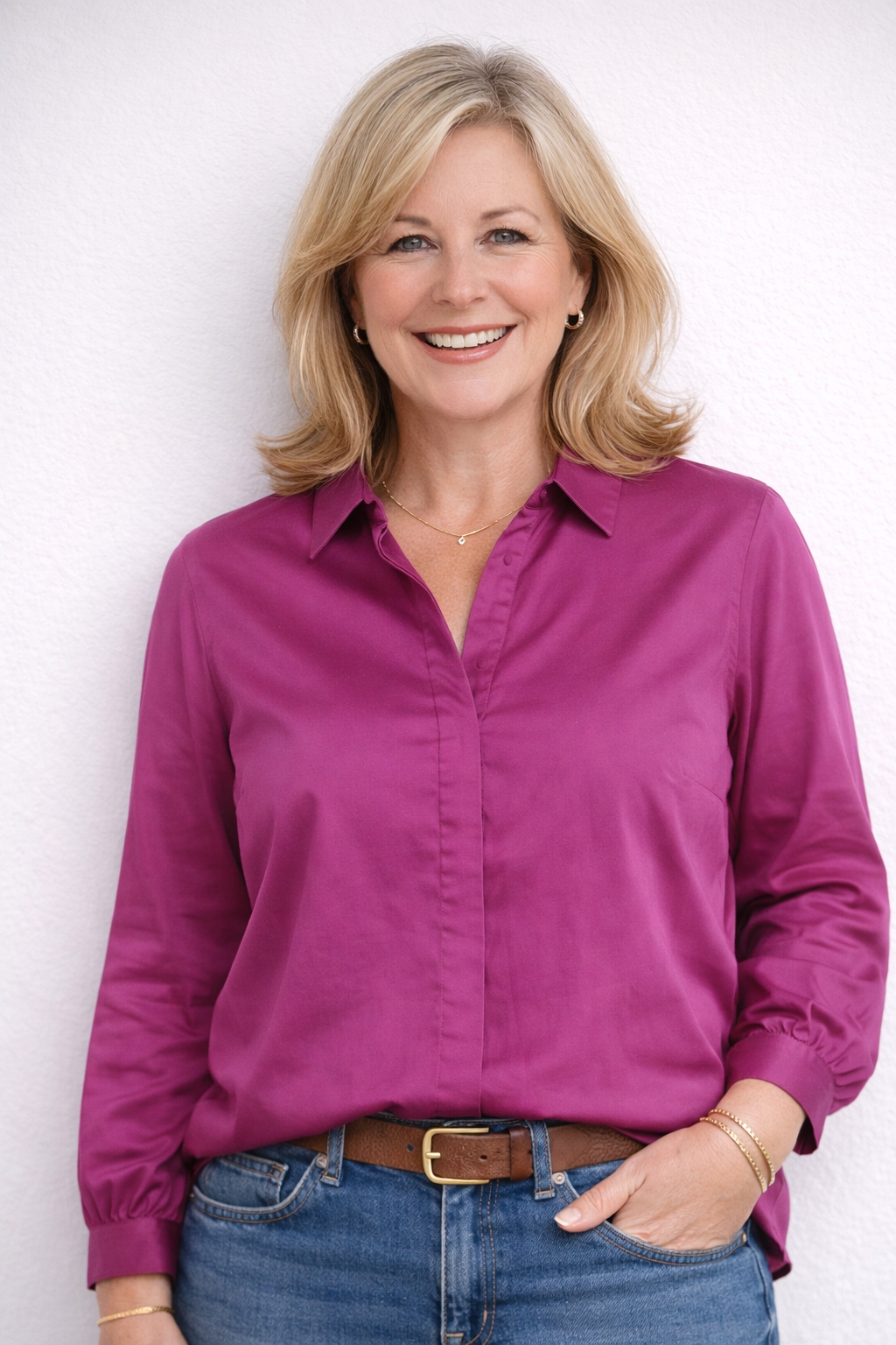 Satinlook i fin selskabsskjorte i fuchia fra Brandtex.