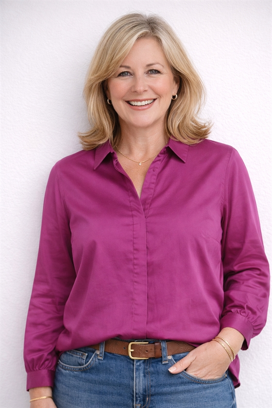 Selskabsskjorte i satinlook i fuchia fra Brandtex til damer