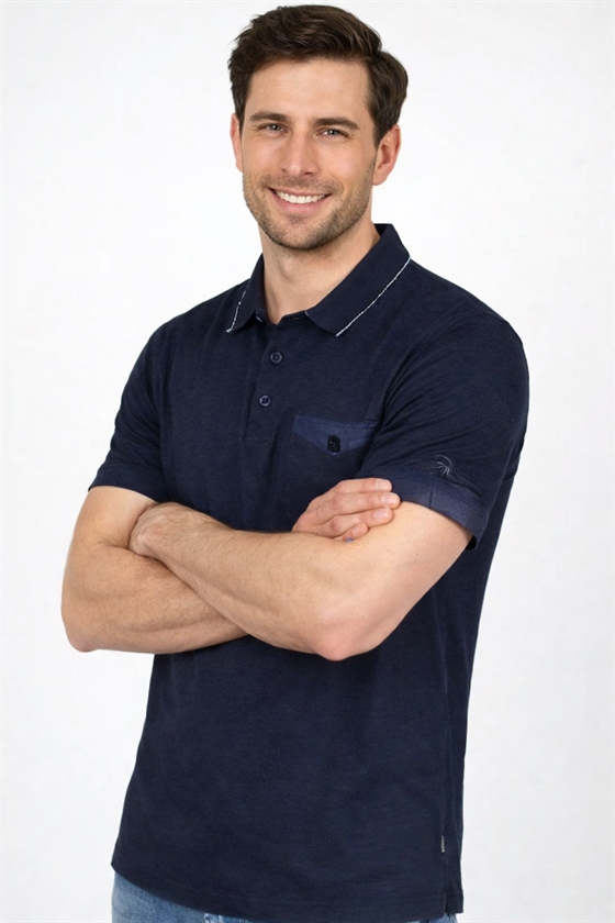Herrepolo i sort med tern på kraven og ved stolpelukning.