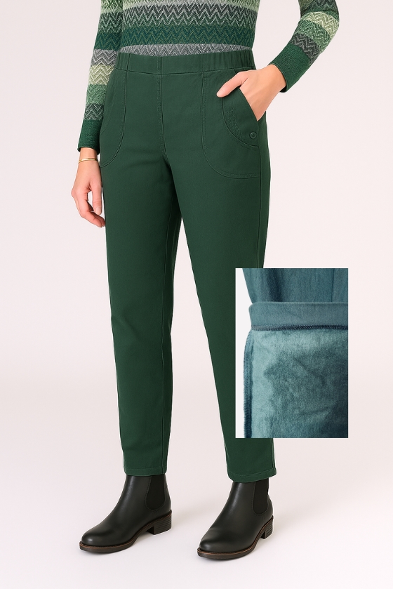 Pia varme bukser dame med foer, stræk og elastik i taljen i grøn